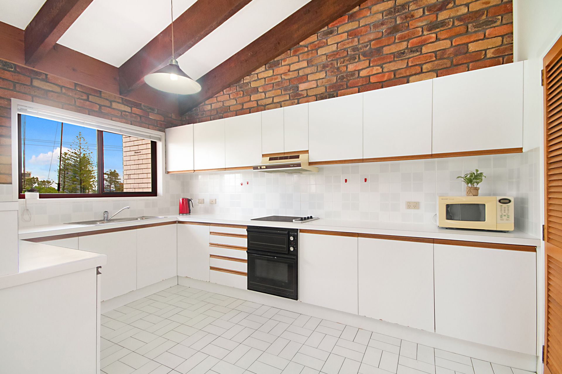 Kitchen with microwave, hot plates and oven