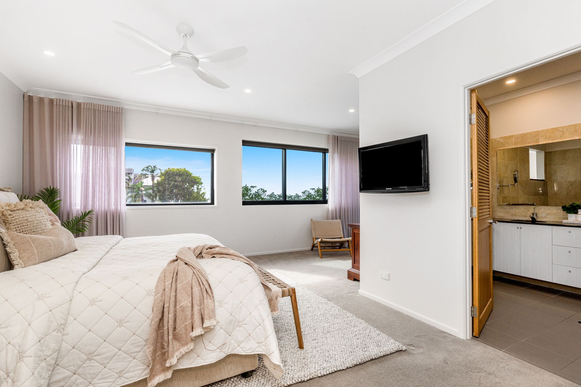 The top level is dedicated to the luxurious master suite, featuring a king-size bed, walk-in robe, expansive ensuite, and breathtaking ocean views to wake up to each morning.